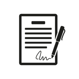 The contract icon. Agreement and signature, pact, accord, convention symbol. Flat